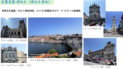 6月8日に訪れたのはポルトガル北部の港町ポルトである。18世紀以降ポートワインの積み出し港として重要視されてきたが、すでに14世紀には市壁が築かれ、以降商業都市として発展してきたという。