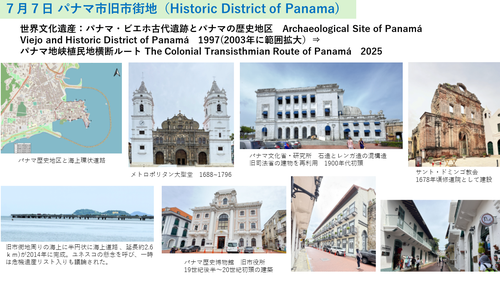 世界文化遺産:パナマ・ビエホ古代遺跡とパナマの歴史地区(Archaeological Site of Panamá Viejo and Historic District of Panamá 1997)⇒2003年に範囲拡大⇒さらに拡大:パナマ地峡植民地横断ルート(The Colonial Transisthmian Route of Panamá 2025)