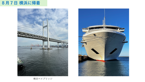私たちのクルーズ船はその後、アリューシャン列島に沿って南下し、日本列島に至り、8月7日、無事横浜港に帰港した。